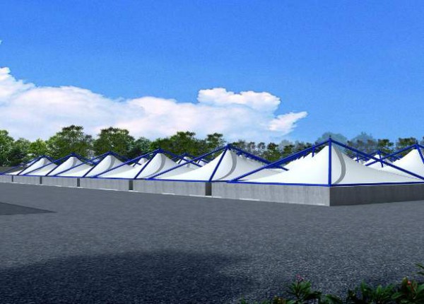 污水池加蓋主要分為固定式和移動式的,固定式主要采用的是鋼支撐反吊膜結構,這個結構具有很強的抗腐蝕性,它的材質能把廢氣完全罩住。整體的鋼結構在外面將膜體懸掛倒掉,這樣就能夠從根本上解決鋼結構和膜體接觸產生的腐蝕性,整體的防腐級別就能夠得到很好的提升,至少能夠使用50年的壽命。而且膜材的自身重量非常輕,且具有很大的拉強力,能夠從根本上解決傳統建筑中沒辦法在大跨度中使用,特別適合于大面積的污水池。