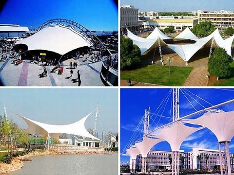 1、織布合成膜:以聚酯絲織成的市心,雙面涂以PVC樹脂,再用熱熔法覆蓋上一層聚氟乙烯膜,制成復合膜,使用年限長久。因布心的張力強度較大可以使用于多種的張啦力型結構,跨度可達8m-10m。