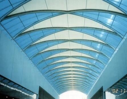 室內(nèi)膜結(jié)構(gòu)與室外膜結(jié)構(gòu)相比,其設計及安裝所考慮的主要問題基本類似,要審慎對待、合理設計,充分考慮現(xiàn)場環(huán)境和施工條件,選擇合適的節(jié)點構(gòu)造形式,保證建筑的合理性及視覺效果。