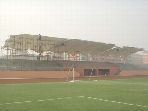 張拉膜在學(xué)校體育看臺(tái)上的應(yīng)用,為學(xué)生提供一個(gè)良好的乘涼、遮陽場(chǎng)所。